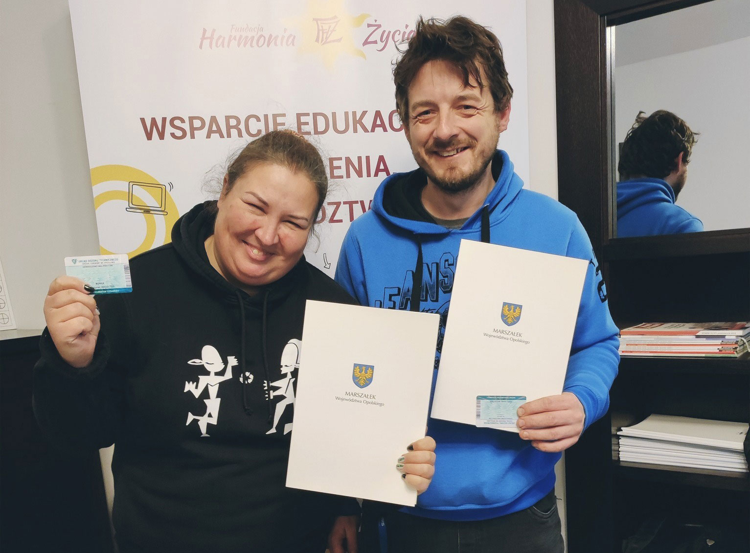 Sympatyczna para zapozowała do pamiątkowego zdjęcia, dumnie trzymając w ręce świeżo zdobyte certyfikaty.![]()