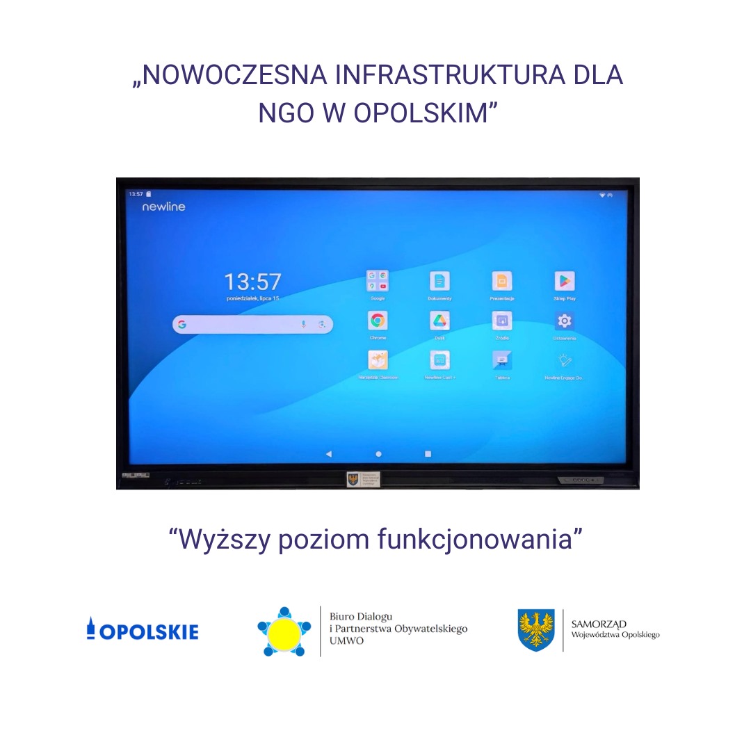 Jest to pięknie prezentujący się interaktywny monitor, który od czerwca 2024 ułatwia pracę naszej Fundacji i pozwoli być jeszcze bardziej dostępnym w naszych działaniach. Ten zakup nie byłby możliwy bez dotacji otrzymanej w ramach realizacji zadania publicznego w zakresie wsparcia rozwoju instytucjonalnego infrastrukturalnego organizacji pozarządowych i innych uprawnionych podmiotów pn. „NOWOCZESNA INFRASTRUKTURA DLA NGO W OPOLSKIM”. Dziękujemy #ZarządWojewództwaOpolskiego i #BiuroDialoguiPartnerstwaObywatelskiego za zaufanie.