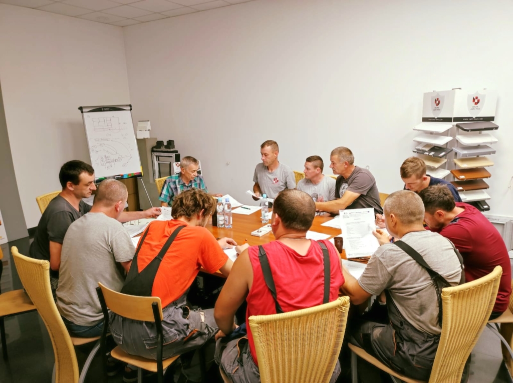 obejmujących tematykę Wózków widłowych specjalistycznych oraz Podestów ruchomych przejezdnych.😎 Jak widać na załączonych zdjęciach uczestnicy pilnie się uczą i już nie mogą się doczekać końcowych egzaminów.🤓